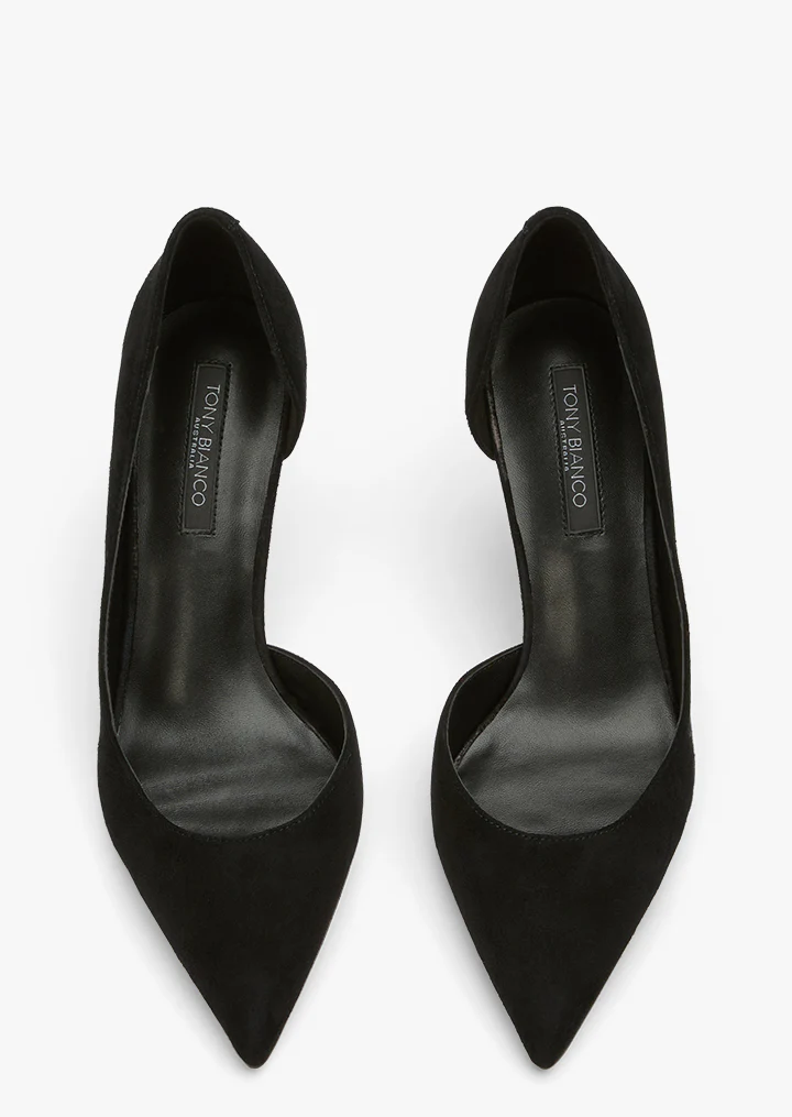 Exude effortless charm with Paris, a refined pointed-toe pump featuring a side cutout that celebrates a minimalist, open-arch silhouette. This elegant design features a soft black suede finish, offering a velvety texture that provides a luxurious feel to any ensemble. Perfectly balanced on a slender heel, Paris is the essential women’s evening pump for a sophisticated, high-fashion look that transitions seamlessly from day to dusk.